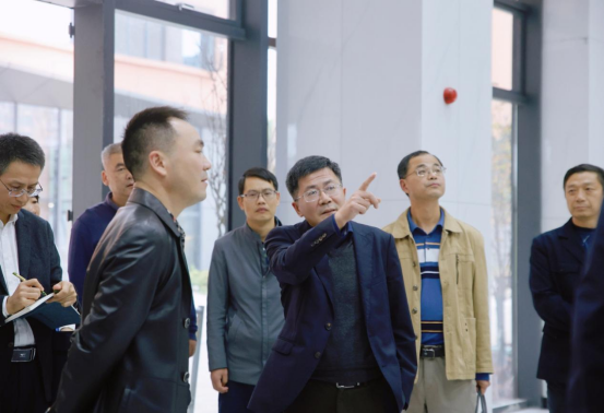 在现场,易兵一行详细查看了大楼的建设情况与空间布局,听取了相关部门的汇报,并就大楼后续的空间规划、功能设置、资源调配等关键问题进行了深入研究。