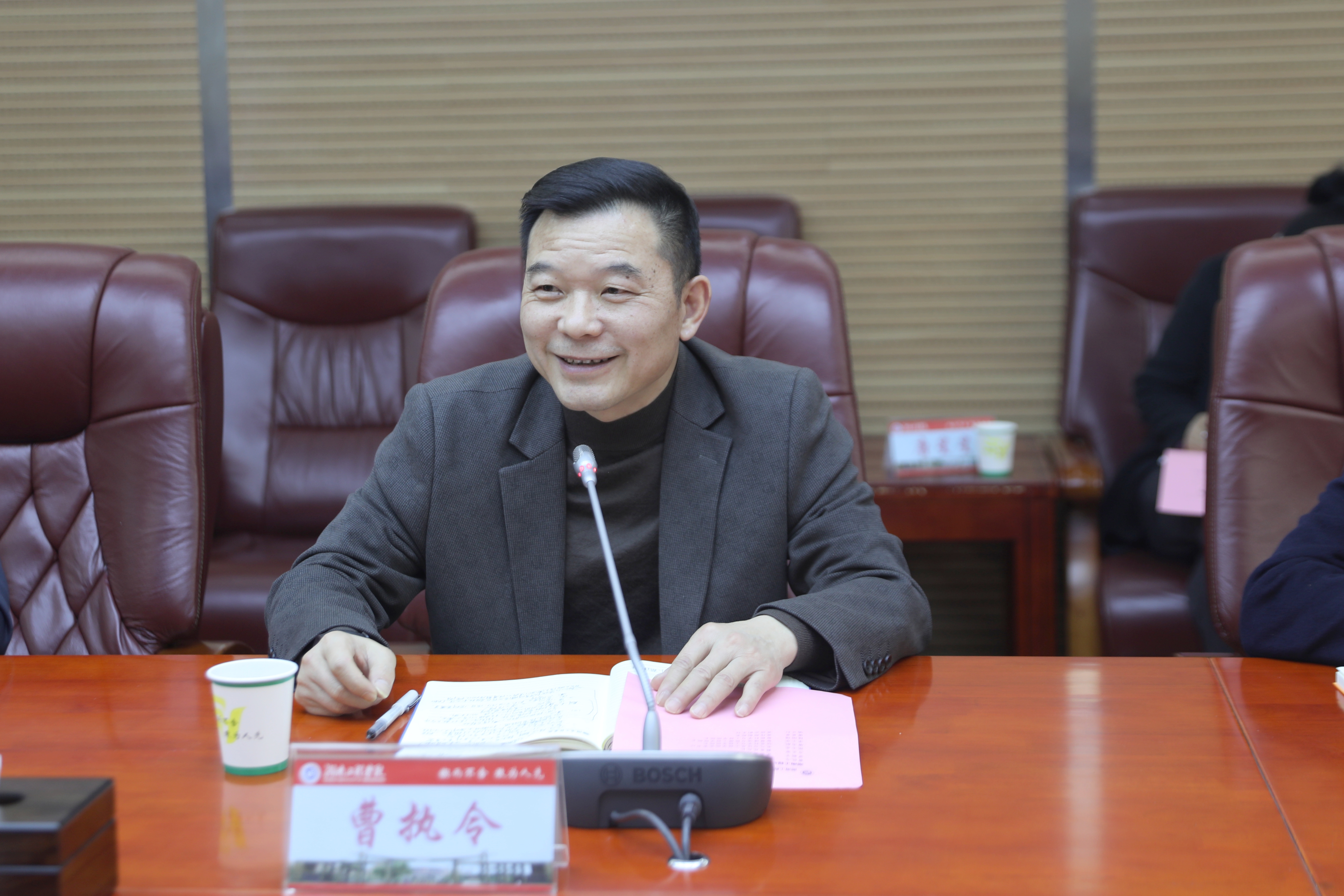 曹执令对湖南软件职业技术大学一行的到访表示热烈欢迎。他指出,开展校际合作是双方扩大教育对外开放、实现资源共享、推动协同发展的双赢之举。我校将全力支持双方在实验室资源共享、实训教学开展、学科竞赛培育等方面的深度合作,通过统筹整合教学资源、科学优化时间安排,为湖南软件职业技术大学学生提供实训、见习平台。同时,双方需进一步深化校企合作,推动实验室建在企业、企业资源引入学校,构建校企协同的可持续实践教学机制,从根本上破解实训资源瓶颈,提升人才培养与产业需求的适配度。