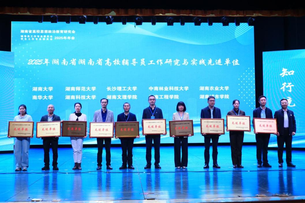 近日,湖南省高校思想政治教育研究会辅导员工作专业委员会、学生工作专业委员会年会召开。我校再次获评“2025年湖南省高校辅导员工作研究与实践先进单位”;周宁莎、陈祎婷两位老师荣获“2025年湖南省高校辅导员工作研究与实践先进个人”,庞洁丽老师荣获“2025年湖南省高校学生工作研究与实践先进个人”;赵玲令、彭小玲老师撰写的育人案例,入选“2025年湖南省高校学生工作优秀育人案例”。
