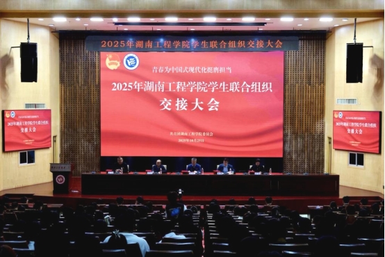 10月25日上午,我校在图书馆一报告厅举行湖南省高校优秀思政政治工作者名师工作室主题宣讲暨2025年校学生联合组织交接大会。党委委员、副校长张小刚,学生工作部、团委负责人,2024-2025届学联主席团成员、2025-2026届学联全体成员参会。