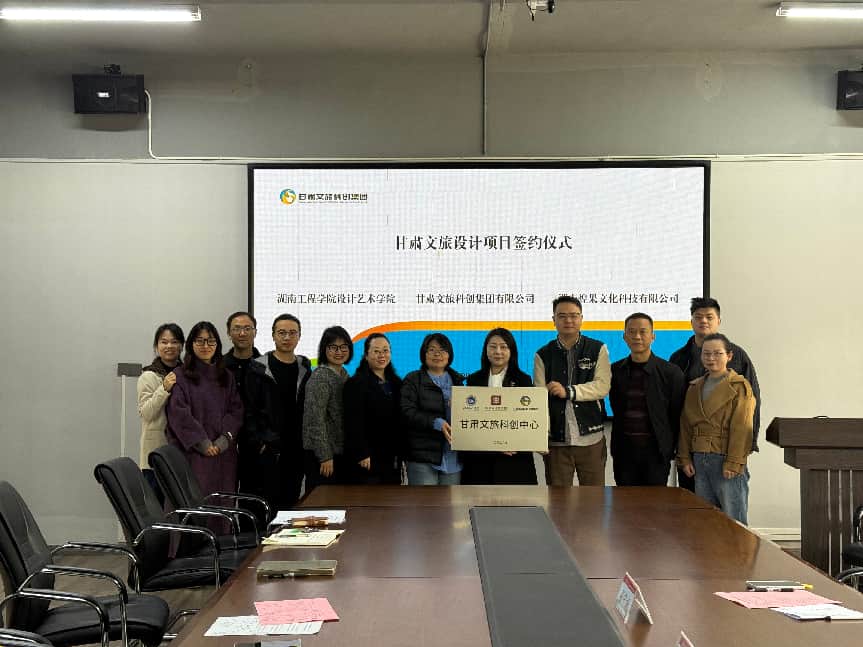 为深入贯彻产教融合发展战略,推动校地、校企协同创新,4月3日上午,甘肃文旅设计项目签约仪式在我校设计艺术学院举行。甘肃文旅科创集团有限公司、湖南煌果文化科技有限公司与我校设计艺术学院正式签署战略合作框架协议。