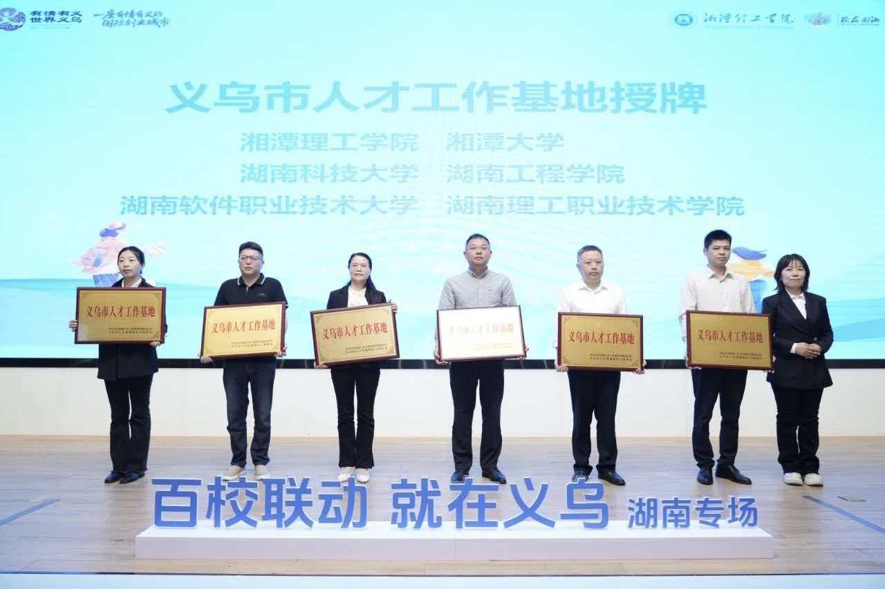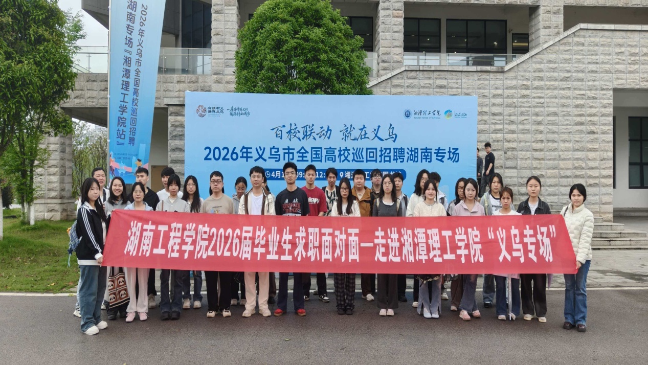 为进一步拓宽毕业生就业渠道,深化校地企合作,4月12日,我校招生就业处应邀参加义乌城市推介会,并组织毕业生积极赴湘潭理工学院参加“百校联动 就在义乌” 2026全国高校巡回招聘湖南专场活动。
