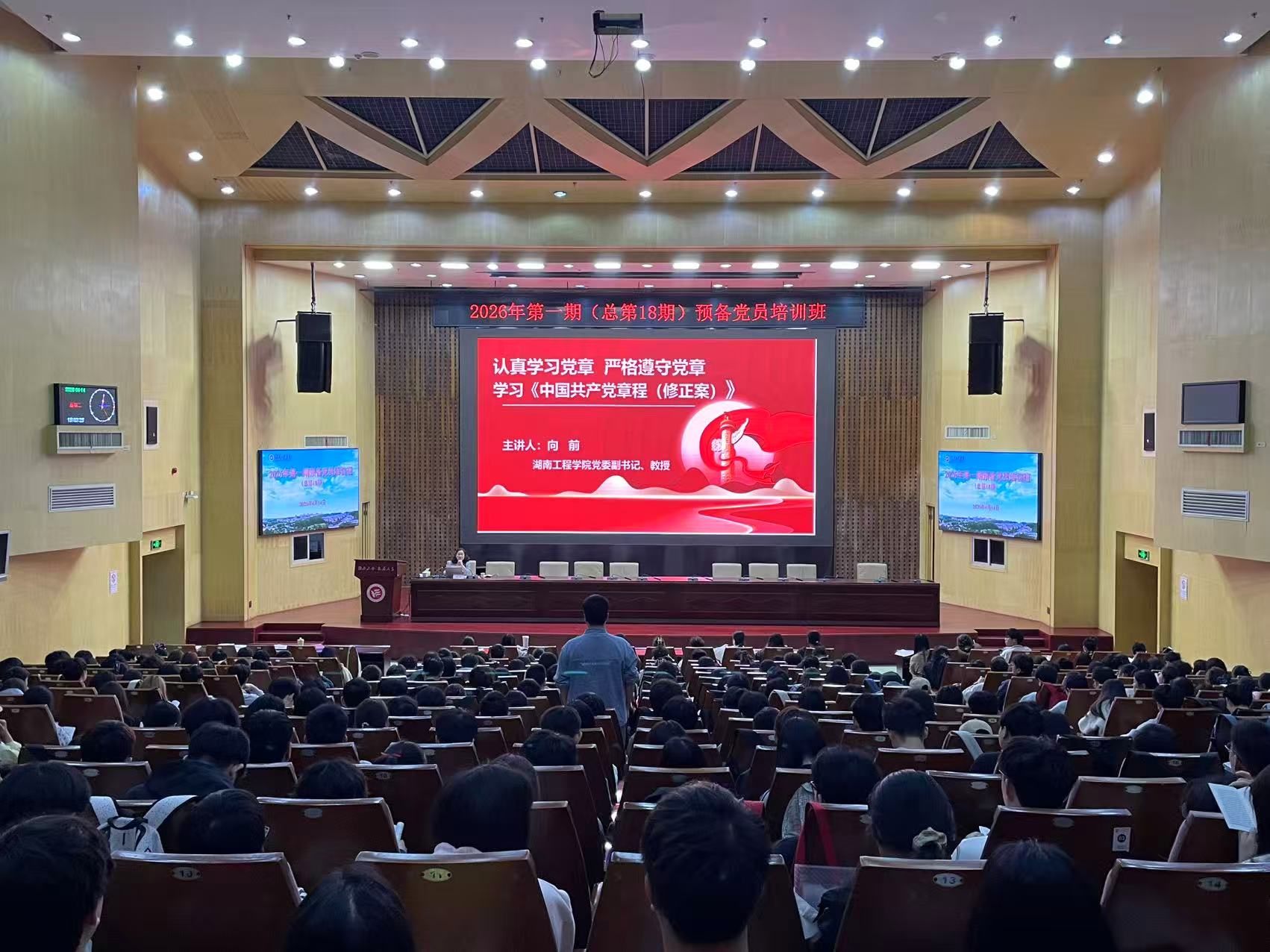 为深入学习贯彻党的二十届四中全会精神,切实加强党员教育管理,引导预备党员牢固树立党章意识,自觉用党章规范言行,4月14日下午,校党委副书记、党校校长向前在一报告厅为预备党员讲授专题党课。