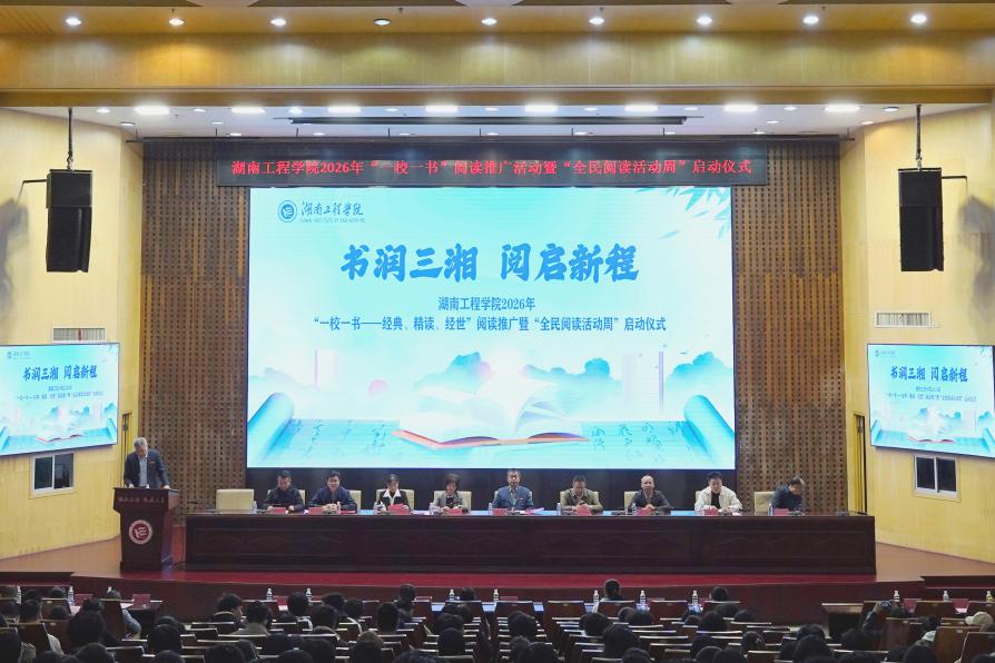 4月22日,我校2026年“一校一书”阅读推广暨“全民阅读活动周”启动仪式在一报告厅举行。校党委委员、副校长张小刚参加开幕式并致辞,党政办公室、学生工作部、教务处、研究生院、团委、工会、图书馆(档案馆)、校友联络中心负责人以及各二级学院副书记和师生代表共400余人参加。启动仪式由图书馆(档案馆)副馆长卢时光主持。