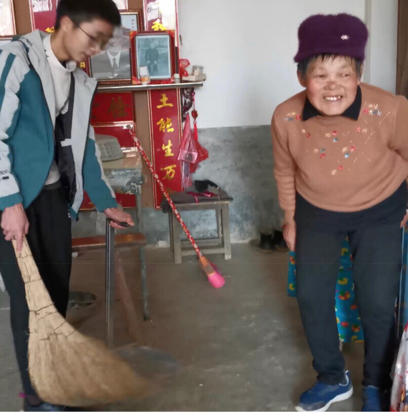 图为志愿者刘瑾帮忙给老人们打扫卫生刘瑾供图